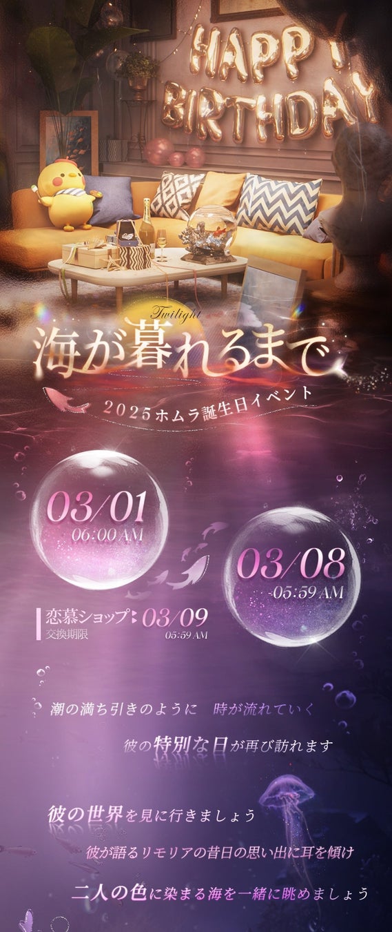 - ホムラ誕生日イベント「海が暮れるまで」開催(3/1~3/8)