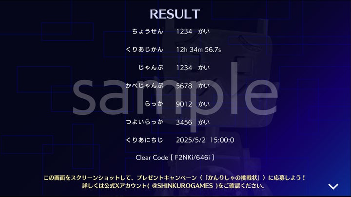 応募方法は、公式Xアカウントをフォローし、クリア画面のスクリーンショットをダイレクトメッセージで送信することです。