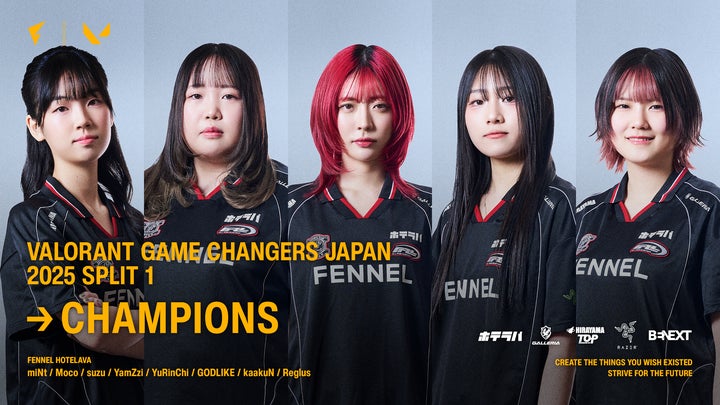 プロeスポーツチームFENNELのVALORANT女子部門「FENNEL HOTELAVA」が、2025年4月30日開催のVALORANT公式女性大会「VALORANT Game Changers Japan 2025 Split 1」で優勝しました。
