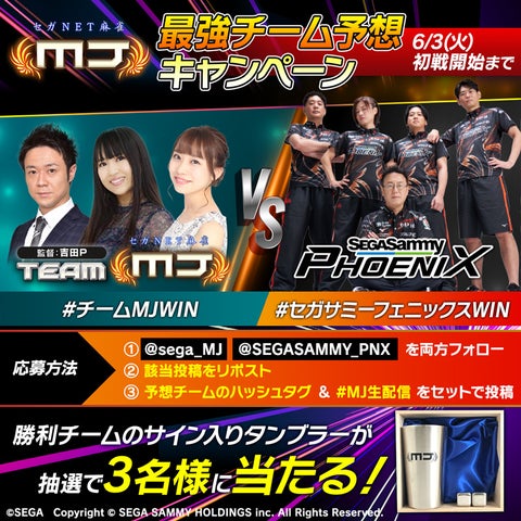 - 『セガNET麻雀 MJ』とセガサミーフェニックスのコラボ生配信が6月3日19時より実施