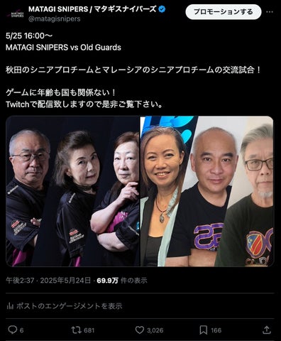 日本初のシニアeスポーツチーム「MATAGI SNIPERS」が、マレーシアのシニアチーム「Old Guards of the Straits」と国際交流試合を実施。