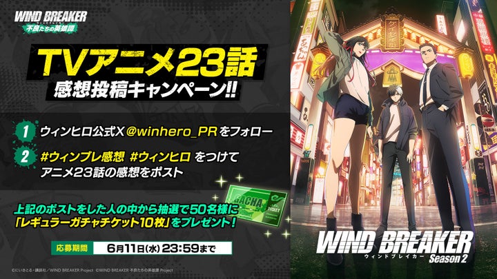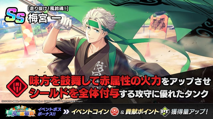 TVアニメ『WIND BREAKER』を題材としたスマホゲーム『WIND BREAKER 不良たちの英雄譚』(ウィンヒロ)にて、期間限定イベント「激突!風鈴VS獅子頭連!波乱の運動会」が開催。