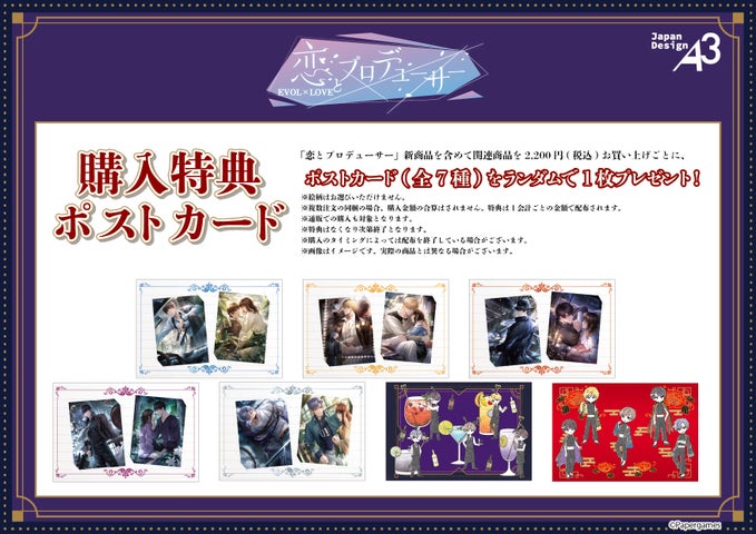 - 購入特典としてポストカード、メニュー注文特典としてコースターが用意されている。