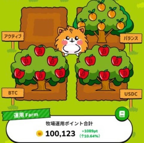 ユーザーは、ビットコイン価格に連動して作物を育て、収穫することで暗号資産を得る。