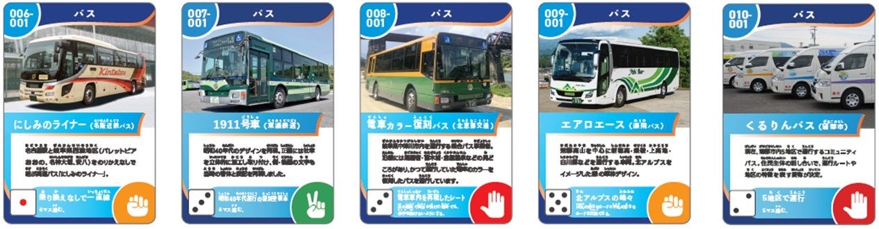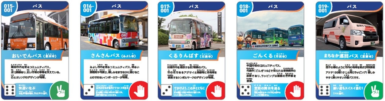 このカードは、公共交通機関の認知度向上と利用促進を目的としており、各事業者が運行する電車やバスの特徴や情報を掲載しています。