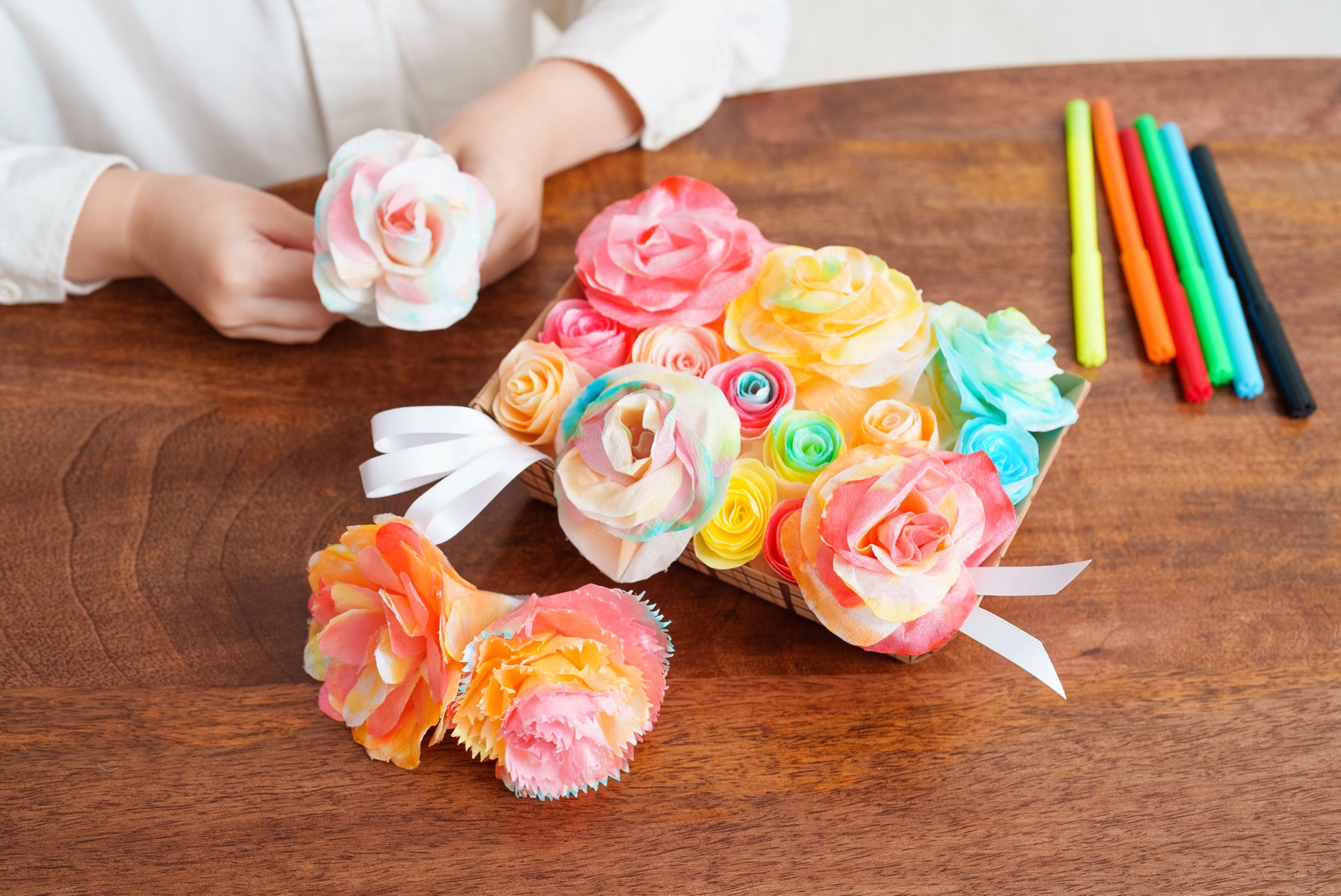 - グラデーションフラワーは毛細管現象の原理を学びながらカラフルな花を作る