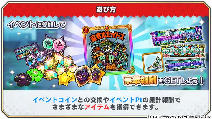 シールコレクションRPG『ビックリマン・ワンダーコレクション』にて、期間限定イベント「天蓋瀑布の魔将 魔君ポセイドス」が開催。