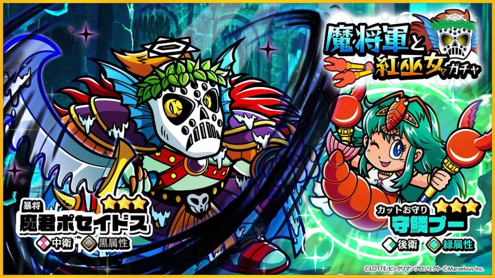新キャラクター「魔君ポセイドス」と「守鱗プー」が登場する他、「魔将軍と紅巫女ガチャ」や「☆3確定サマーガチャ-ヘッド編-」も開始。