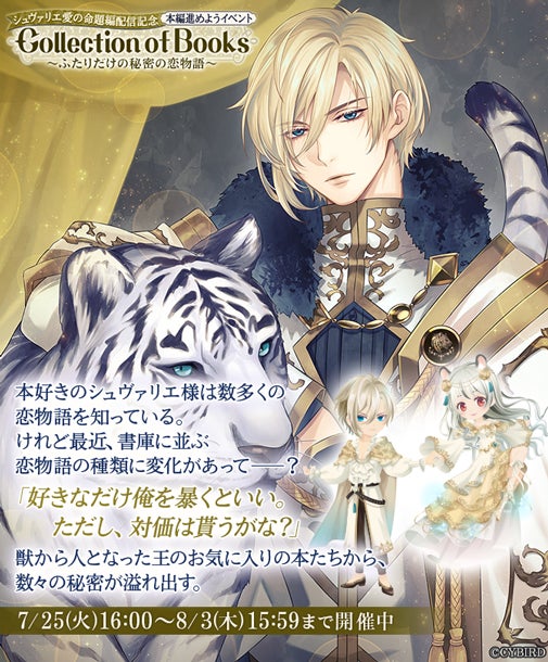 配信開始に合わせて、アプリ内では「シュヴァリエ愛の命題編配信記念 Collection of Books~ふたりだけの秘密の恋物語~」というイベントも開催されます。