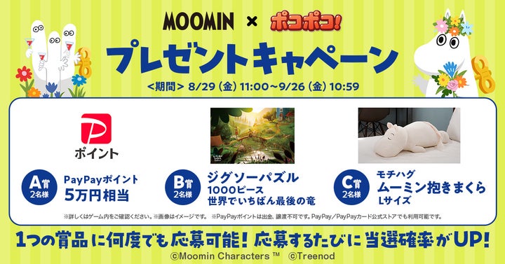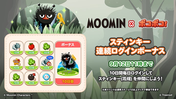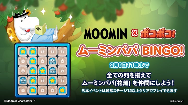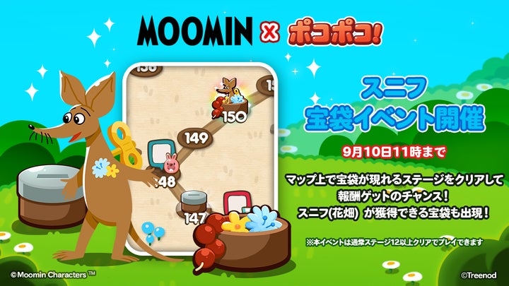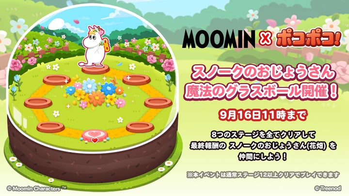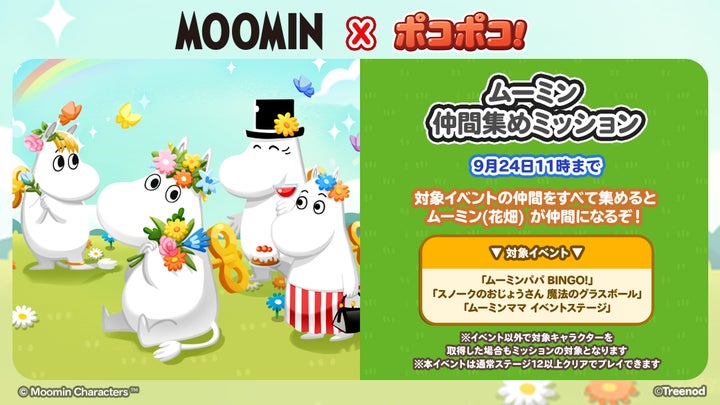 また、ログインボーナスやビンゴイベント、宝袋イベント、魔法のグラスボールイベント、仲間集めミッションなど、様々なイベントが開催され、ムーミンのキャラクター達が登場する。