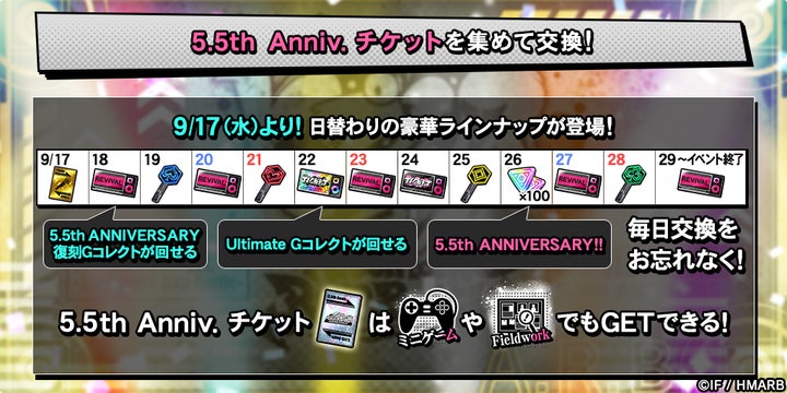 - イベント「5.5th ANNIVERSARY」やGコレクト、ミニゲームなどを開催。