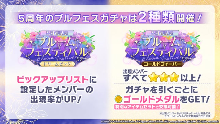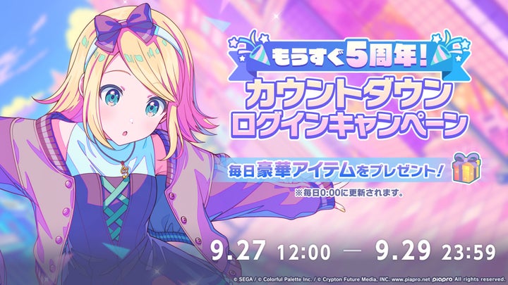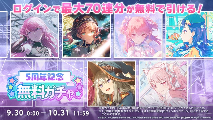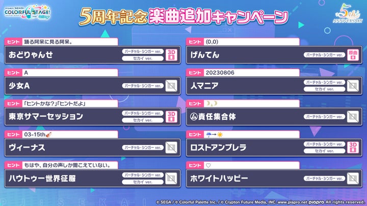 - 5周年記念キャンペーンとして、楽曲追加、ガチャ、ログインボーナスなどを実施