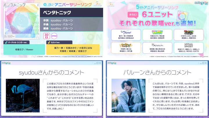 syudouさん、バルーンさんによる5周年記念アニバーサリーソング「ペンタトニック」が9月30日に追加される。