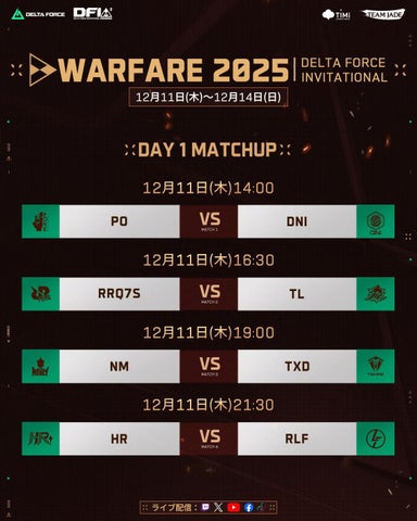 - 『Delta Force』の世界大会「2025 Delta Force Invitational: Warfare」が12月11日~14日に開催。