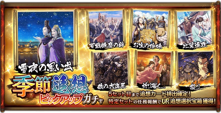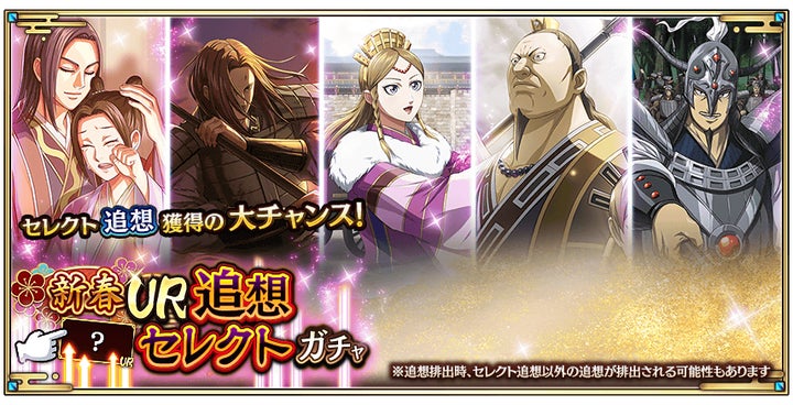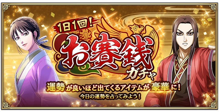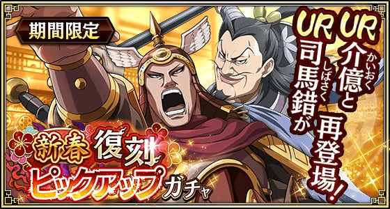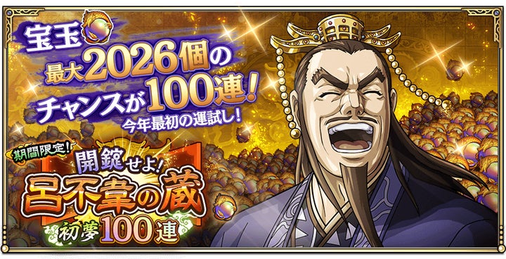 新春を記念した様々なイベントが開催され、ログインボーナス、呂不韋の蔵ガチャ、お賽銭ガチャ、新城主応援ガチャなどが実施されます。