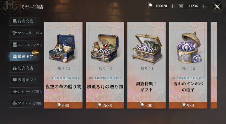 - セレクトピックアップガチャや限定ギフト販売など、多数の特別コンテンツが用意されている。