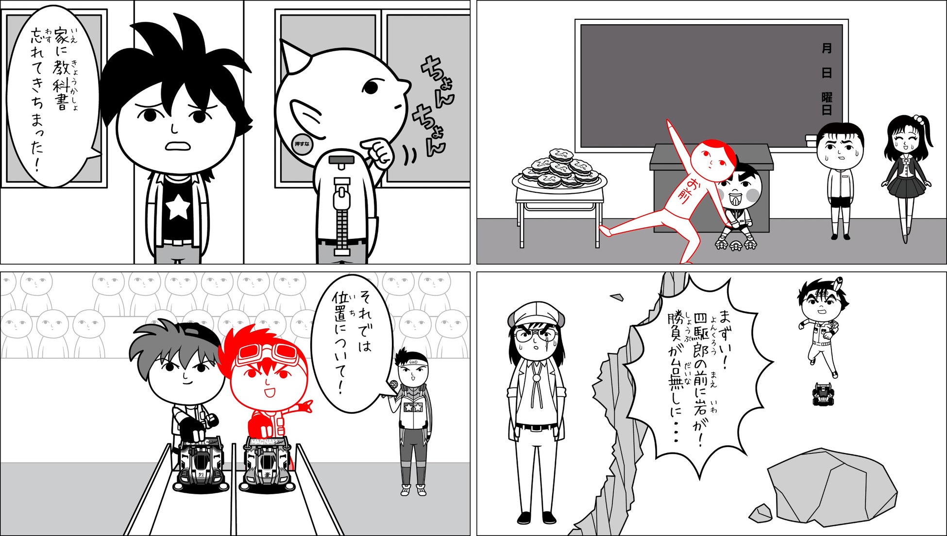 - うちゅう人田中太郎、おぼっちゃまくん、爆走兄弟レッツ&ゴー!!、ダッシュ!四駆郎