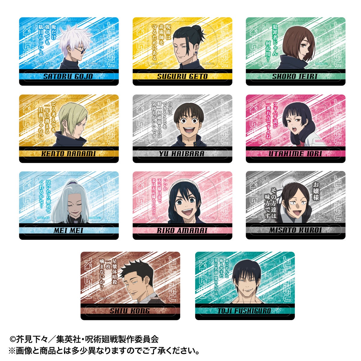 - TVアニメ『呪術廻戦』第2期「懐玉・玉折」、全19種、等身イラストデザイン8種、セリフ入りデザイン11種