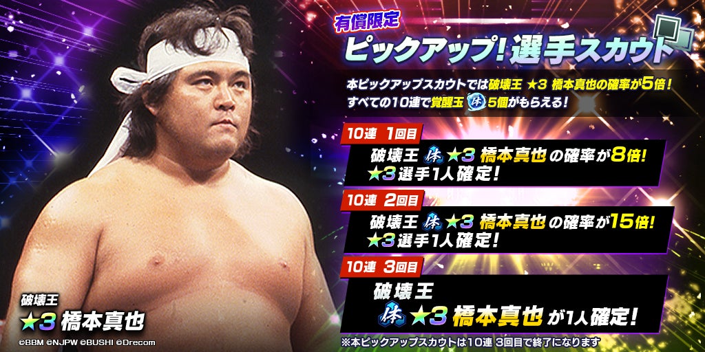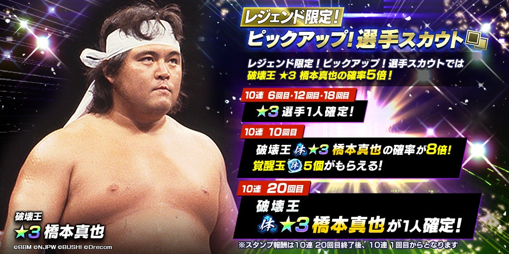 - ★3「[破壊王]橋本真也」と★3「[GENE BLAST]辻陽太」実装