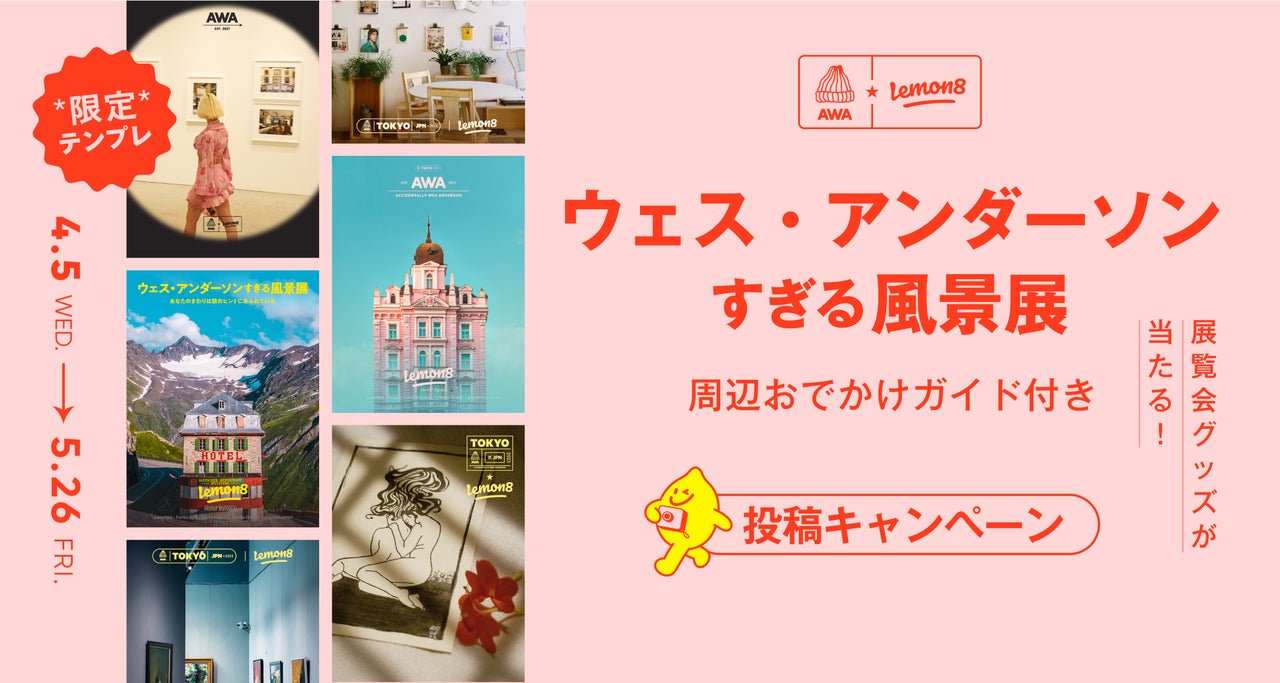 Lemon8、「ウェス・アンダーソンすぎる風景展(AWA展)」とのコラボレーションで、「アートの世界観に溶け込める」テンプレートとステッカーをアプリ内限定で公開! 会場周辺のおでかけガイドも提供!!