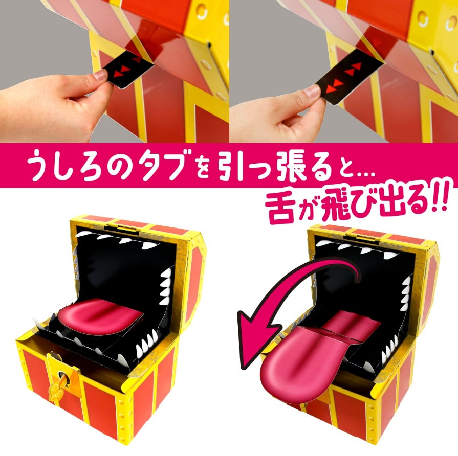 また、宝箱の後ろには取っ手があり、舌が伸びたり縮んだりする楽しい演出も可能です。