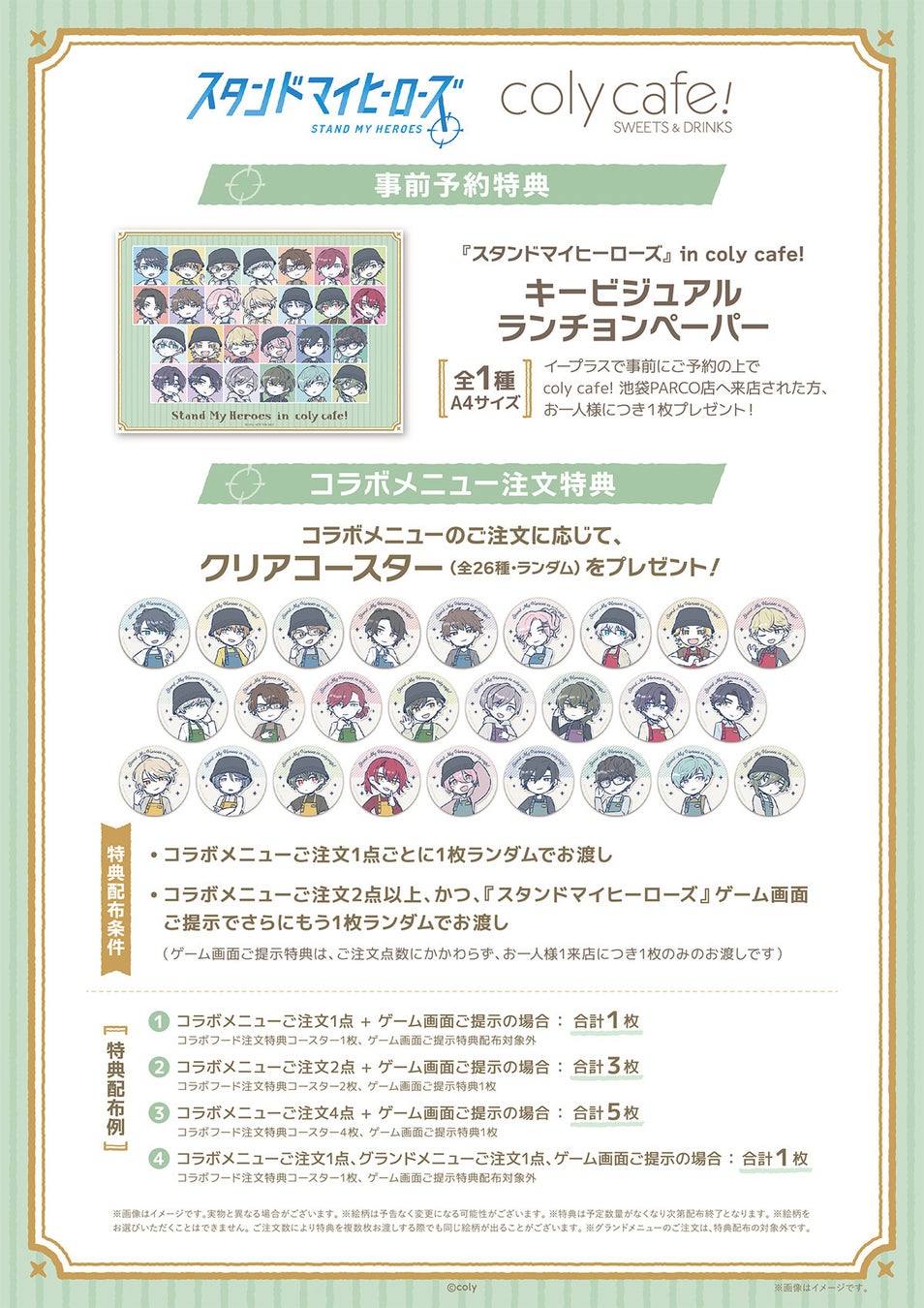 - 株式会社colyが『coly cafe! 池袋PARCO店』で『スタンドマイヒーローズ』とのコラボカフェを開催