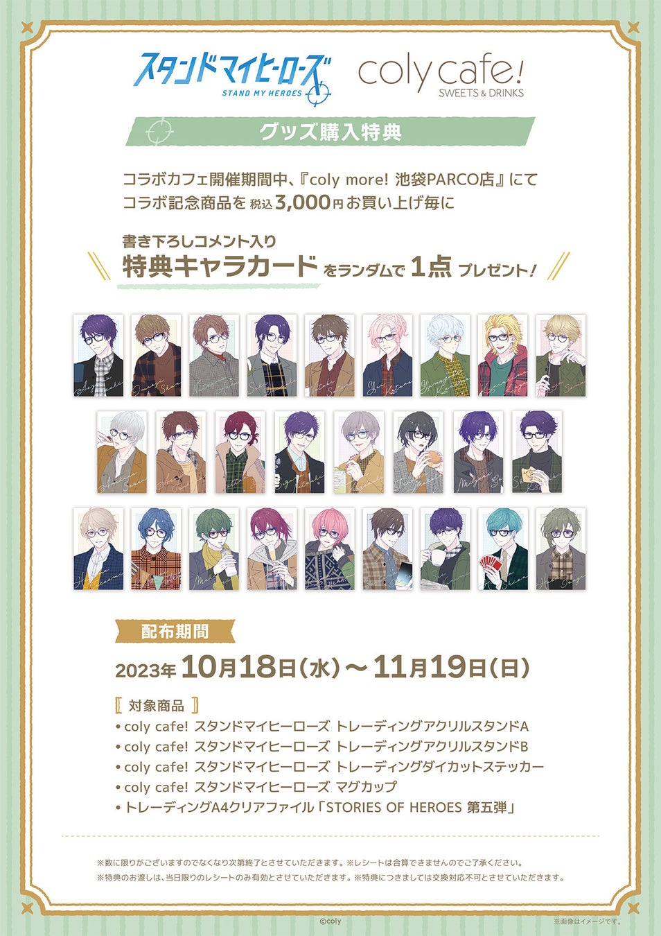 株式会社colyが運営する『coly cafe! 池袋PARCO店』では、2023年10月18日から『スタンドマイヒーローズ』とのコラボカフェを開催します。