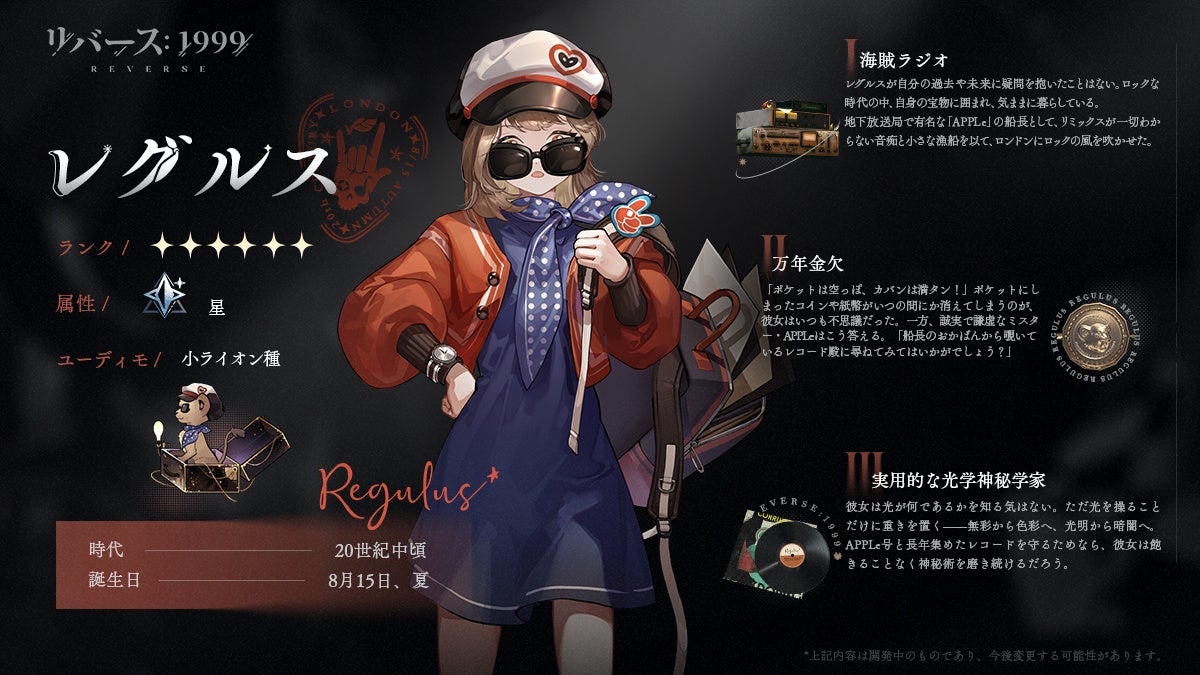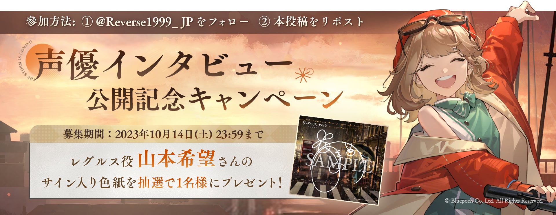 BLUEPOCH GAMES CO., LIMITEDは、2023年10月26日にリリース予定のスマートフォン/PC向けアプリゲーム『リバース:1999』に関して、メインキャラクター「レグルス」の情報と声優の山本希望さんのインタビュー動画を公開しました。