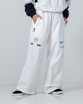 ブルゾンとパンツはメンズとレディースで異なるシルエットで展開され、スタイリッシュなコーディネートになっています。