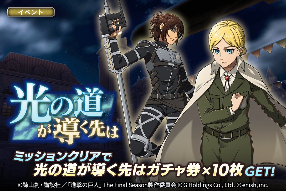株式会社enishは、スマートフォンゲーム「進撃の巨人Brave Order」にて、新イベント「光の道が導く先は」を開催します。