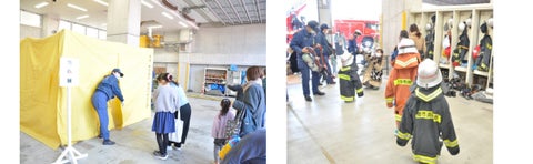 - 消防車輛展示やちびっこ防火服着装体験、水消火器や煙体験、音楽隊演奏などの体験イベント