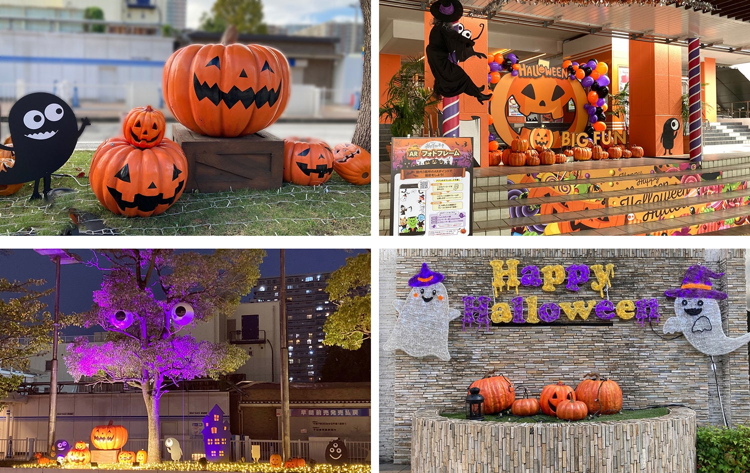 BIGFUN平和島には、大きなかぼちゃのフォトスポットやハロウィン装飾がたくさんあります。