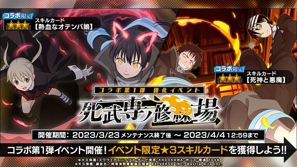- 株式会社XVERSEとextra mile株式会社が『炎炎ノ消防隊 炎舞ノ章』と『ソウルイーター』のコラボを開催