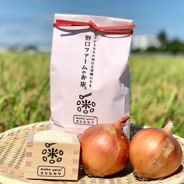 - 野口ファームの完熟たまねぎ5キロとコシヒカリの新米2キロのセットが3,300円で販売