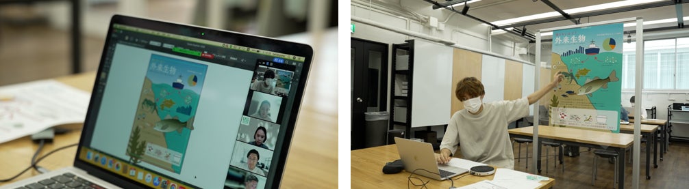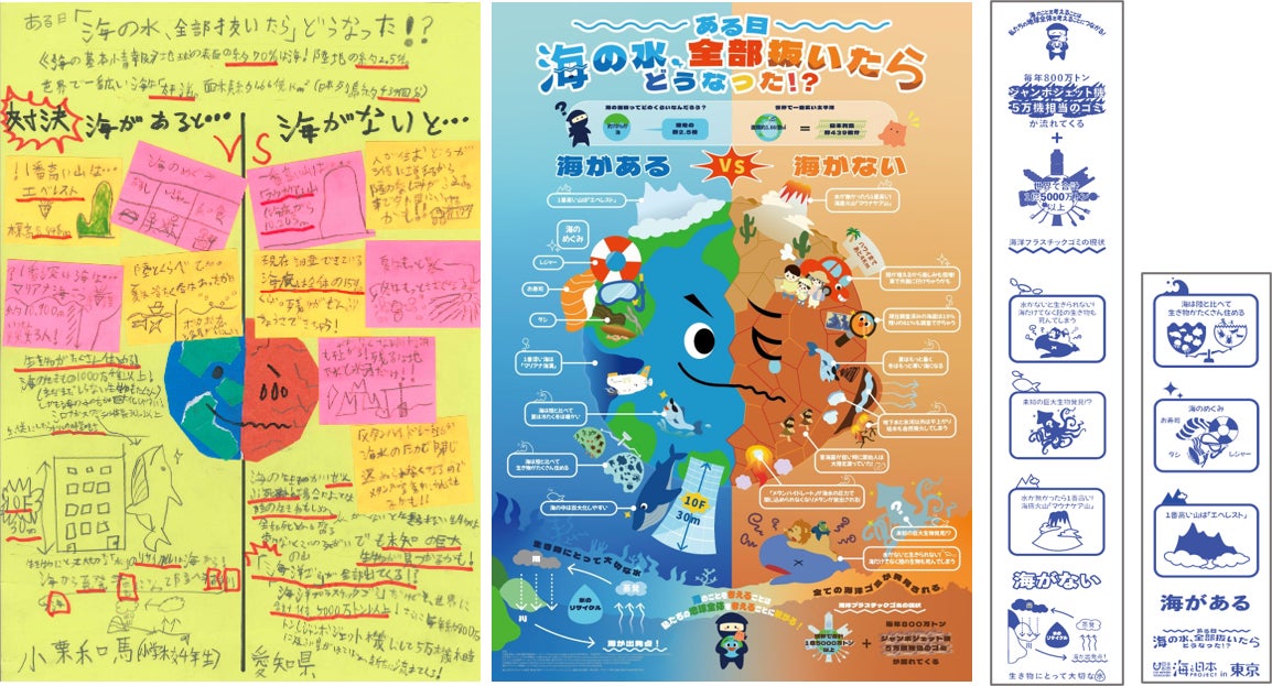 御茶の水美術専門学校生との共同制作期間では、小学生から海の問題を学び、自由研究の良さを活かした作品を作り上げました。