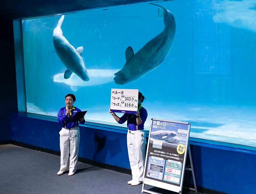 株式会社グランビスタ ホテル&リゾートの鴨川シーワールドでは、11月1日の「計量記念日」に合わせて、11月3日にバンドウイルカとセイウチの公開体重測定、カマイルカとベルーガの子どもたちの体重発表が行われました。