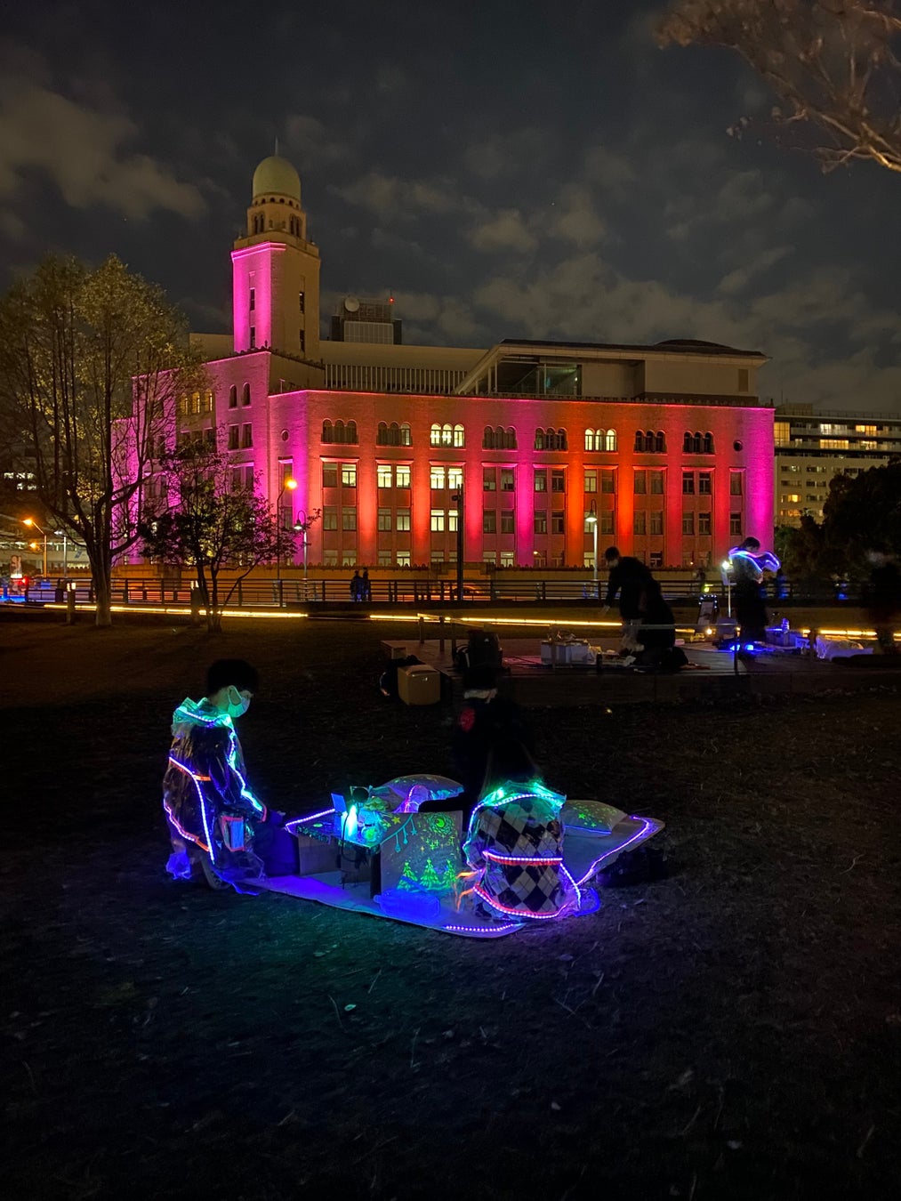 例えば、「みえないものをみる」チーム・ソラによる光のオブジェクトや、「光らnight ピクニック2」横浜市立大学鈴木研究室による光る素材を使ったピクニックキットなど、夜の楽しみ方を提案する作品があります。