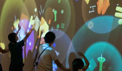 参加者は自分が考えた7文字の「まほうのことば」を色に変換し、カラフルな花畑を作り上げる参加型のアート作品です。