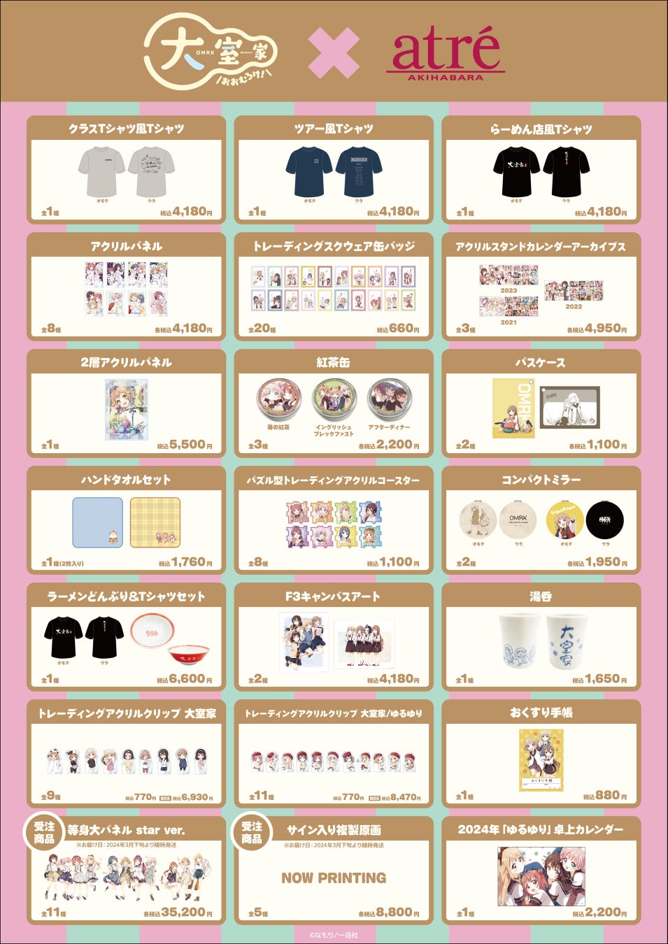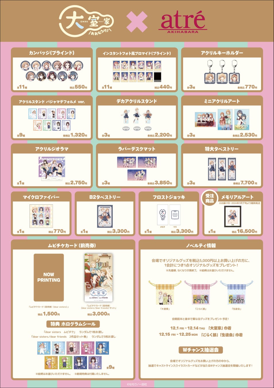 - 2023年12月1日から25日まで、アトレ秋葉原で『大室家×アトレ秋葉原』コラボショップがオープン
