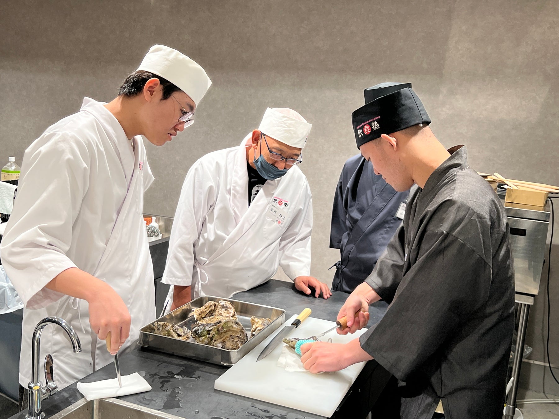 また、津本式の血抜き技術や模擬営業など、飲食塾のカリキュラムを凝縮した実践も行われます。