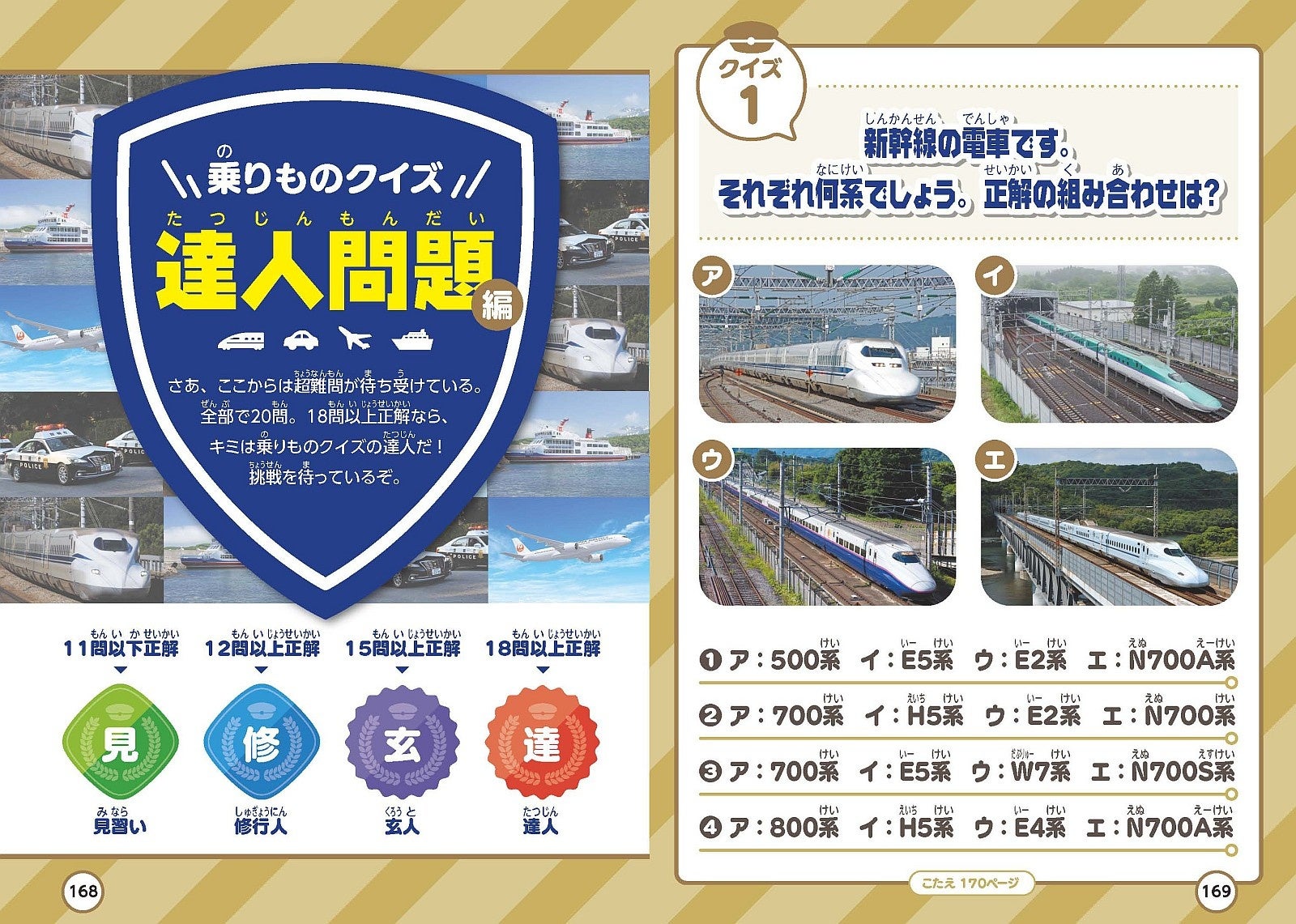 『はじめてのクイズ図鑑 乗りもの』には、乗り物に関する問題が100問用意されています。
