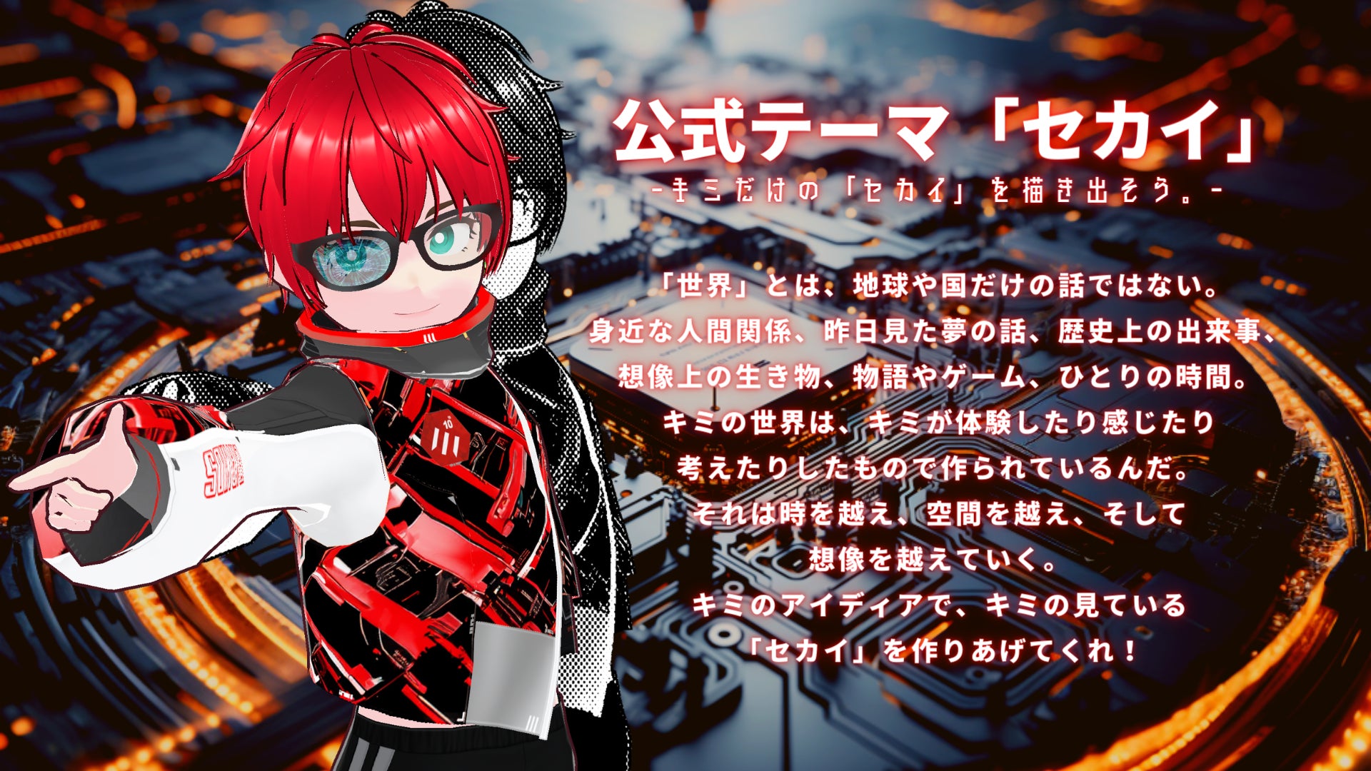 今年のテーマは「セカイ」で、個々の体験や感じたこと、考えたことから生まれる世界を作り上げることが求められます。