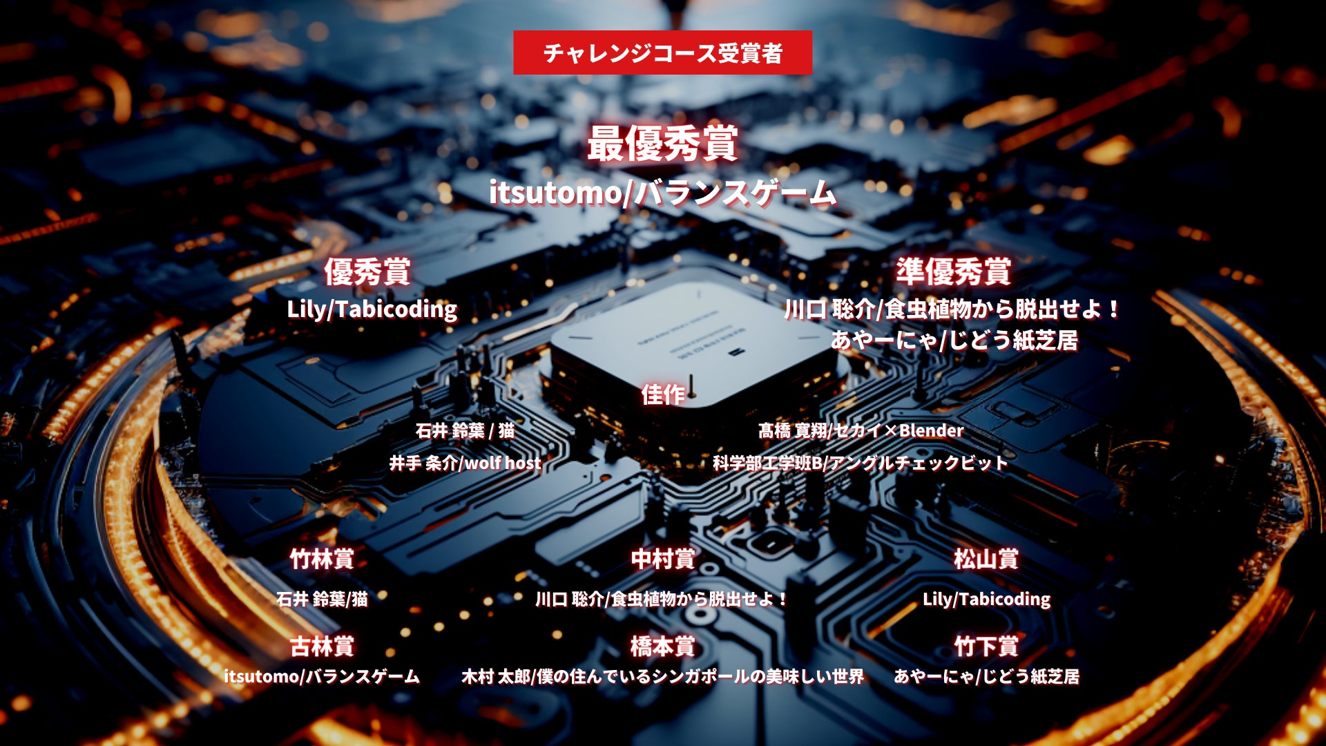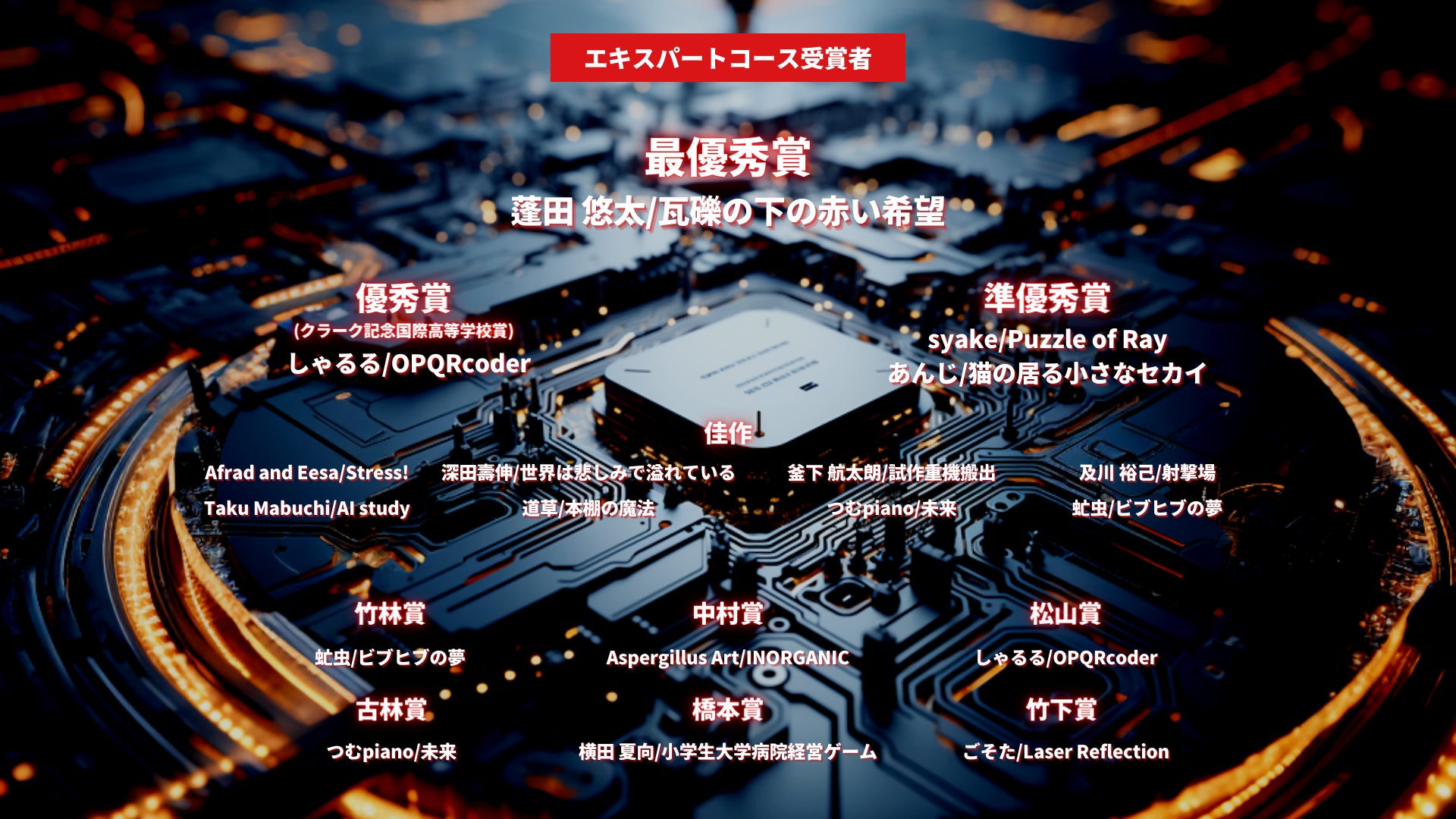 - 最優秀賞や優秀賞は高い評価を受けたプログラミングやアート作品