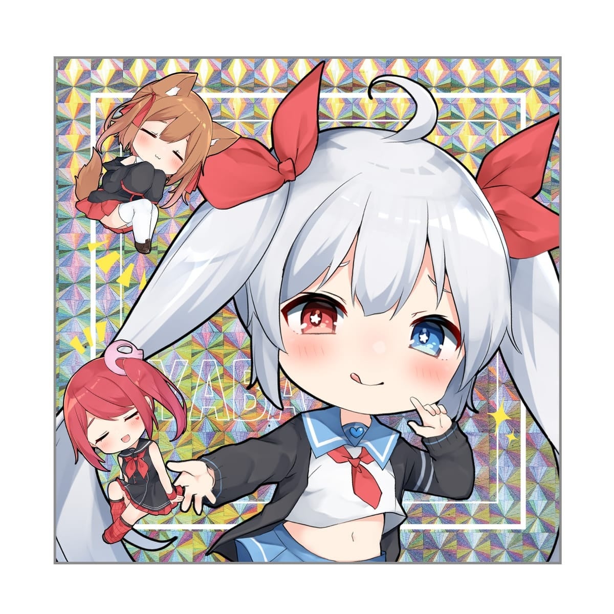 - Tシャツ、アクキー、キャラスタンド、缶バッジ、マグカップ、モババ、スマホケース、ロンT、抱き枕、ステッカーなど全10種類
