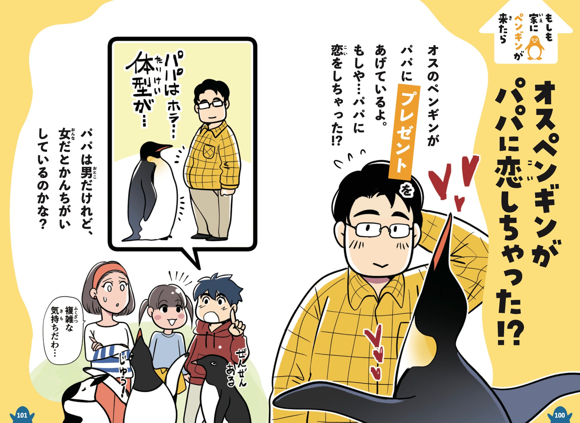 ペンギンを飼うと想像する世界と、その背後にあるペンギンの生態を解説しています。