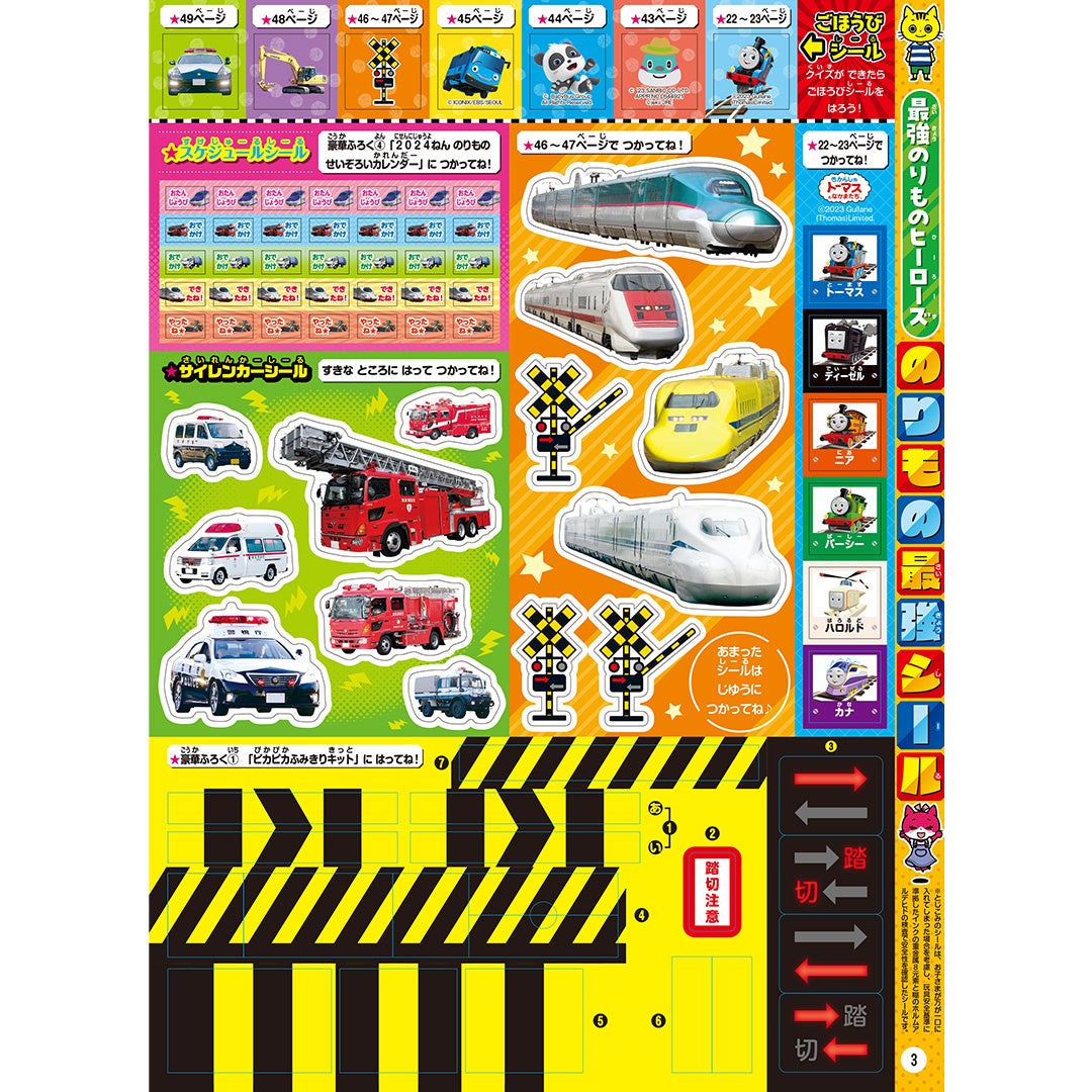- 豪華なふみきりおもちゃ、DVD、のりものシール、カレンダー、なりきりへんしんセット