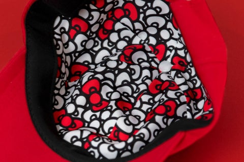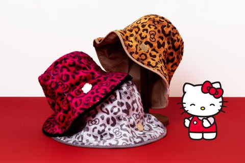 3. HELLO KITTY X CA4LA REVERSIBLE HAT: 人気のヒョウ柄をオリジナルの柄生地にアップデートしたリバーシブルのチューリップハットです。