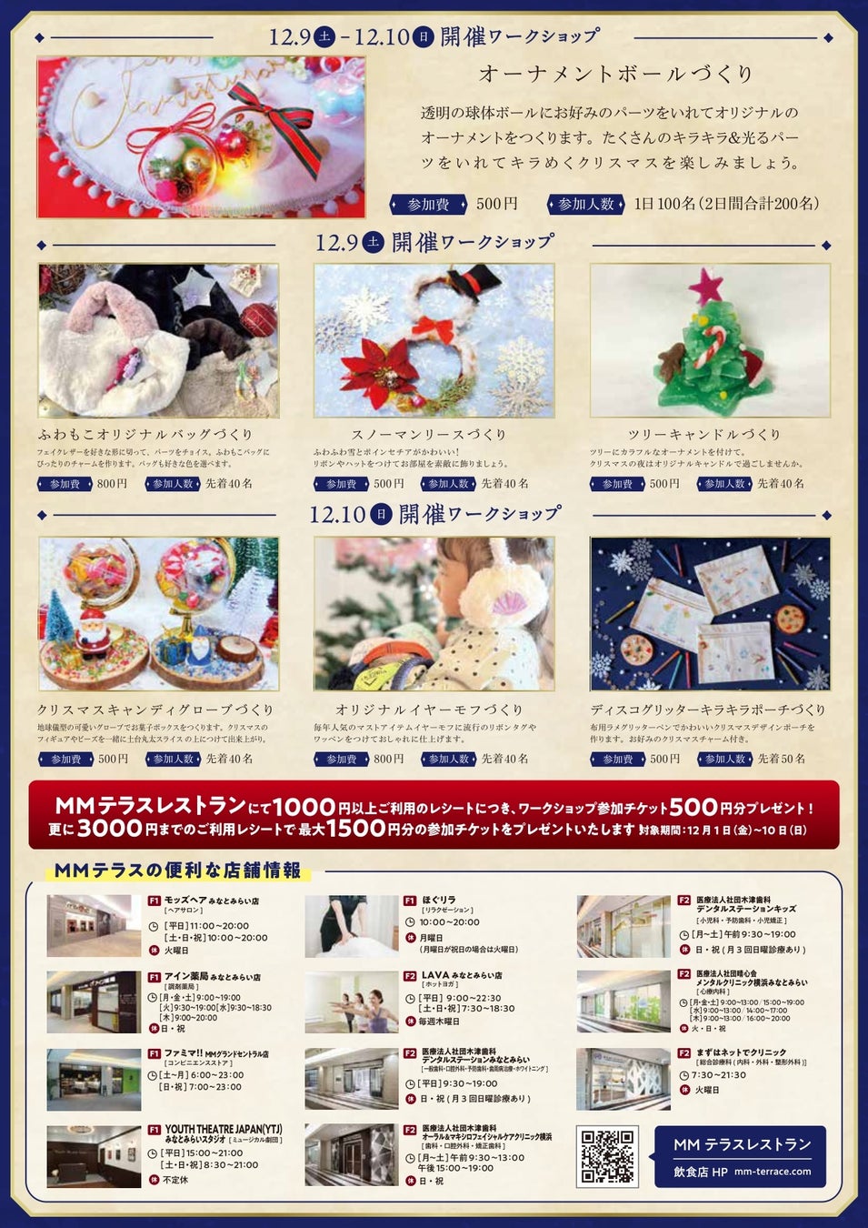- ワークショップ、イベント、特典、JAZZ、クリスマスツリー、オーナメントづくり、バッグ作り