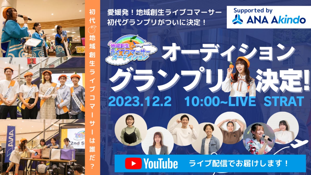 株式会社ドローウィズは、株式会社クリエ主催の「地域創生ライブコマーサーオーディショングランプリ審査会 Supported by ANAあきんど」に協力し、地域の新たな人材発掘を支援します。