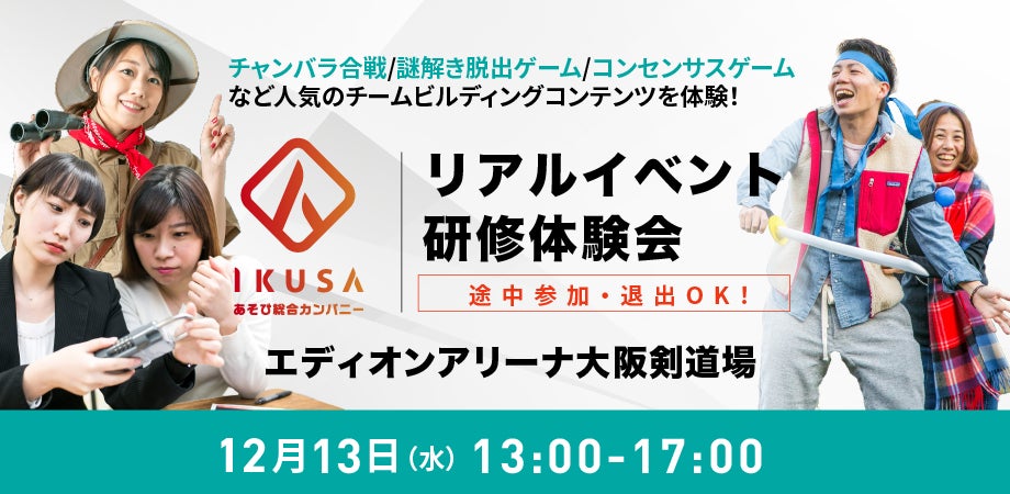 - 株式会社IKUSAはイベント研修会社で年間1000件以上の実施あり